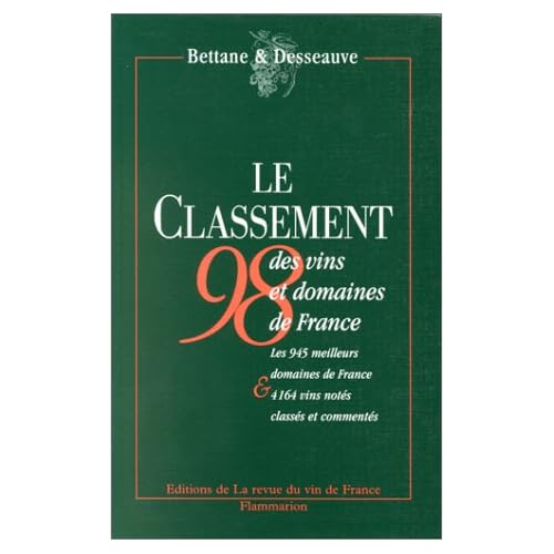 Le classement 1998 des vins et domaines de France Tuesday, 14 January 2020 Edit Category: Livres,Cuisine et Vins,VinsLe classement 1998 des vins et domaines de France DetailsMichel Bettane: Le classement 1998 des vins et domaines de France; Reviews Share this post